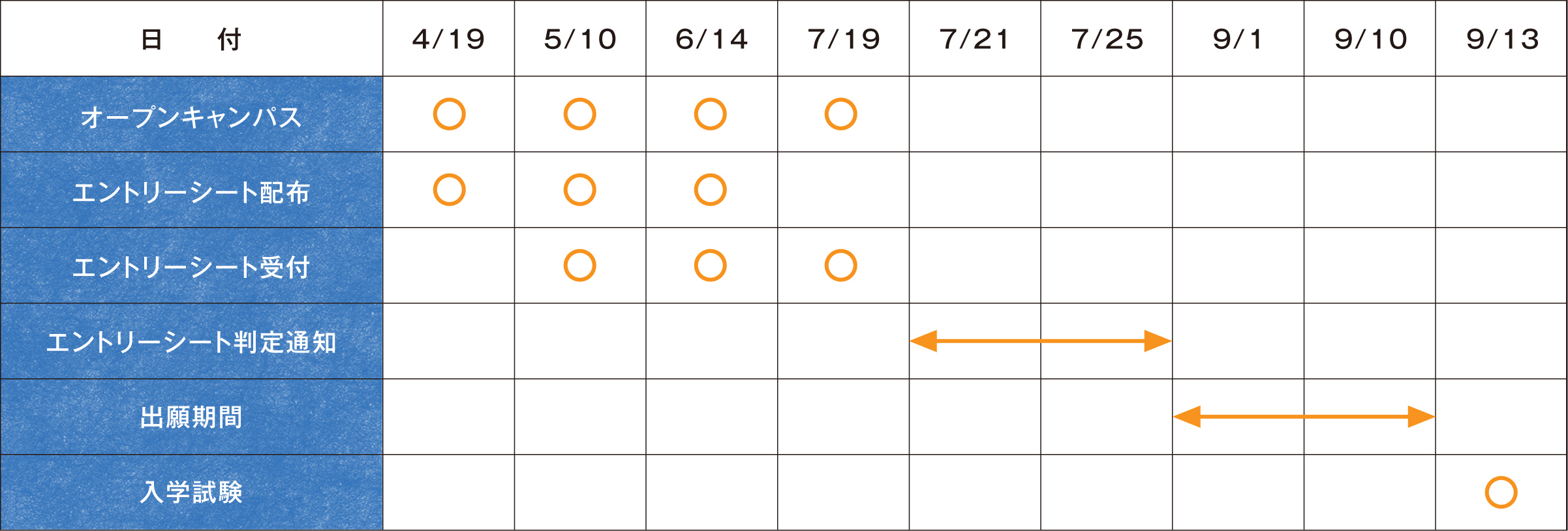 - 本校のオープンキャンパス(エントリーシート配布対象回)に参加した者。